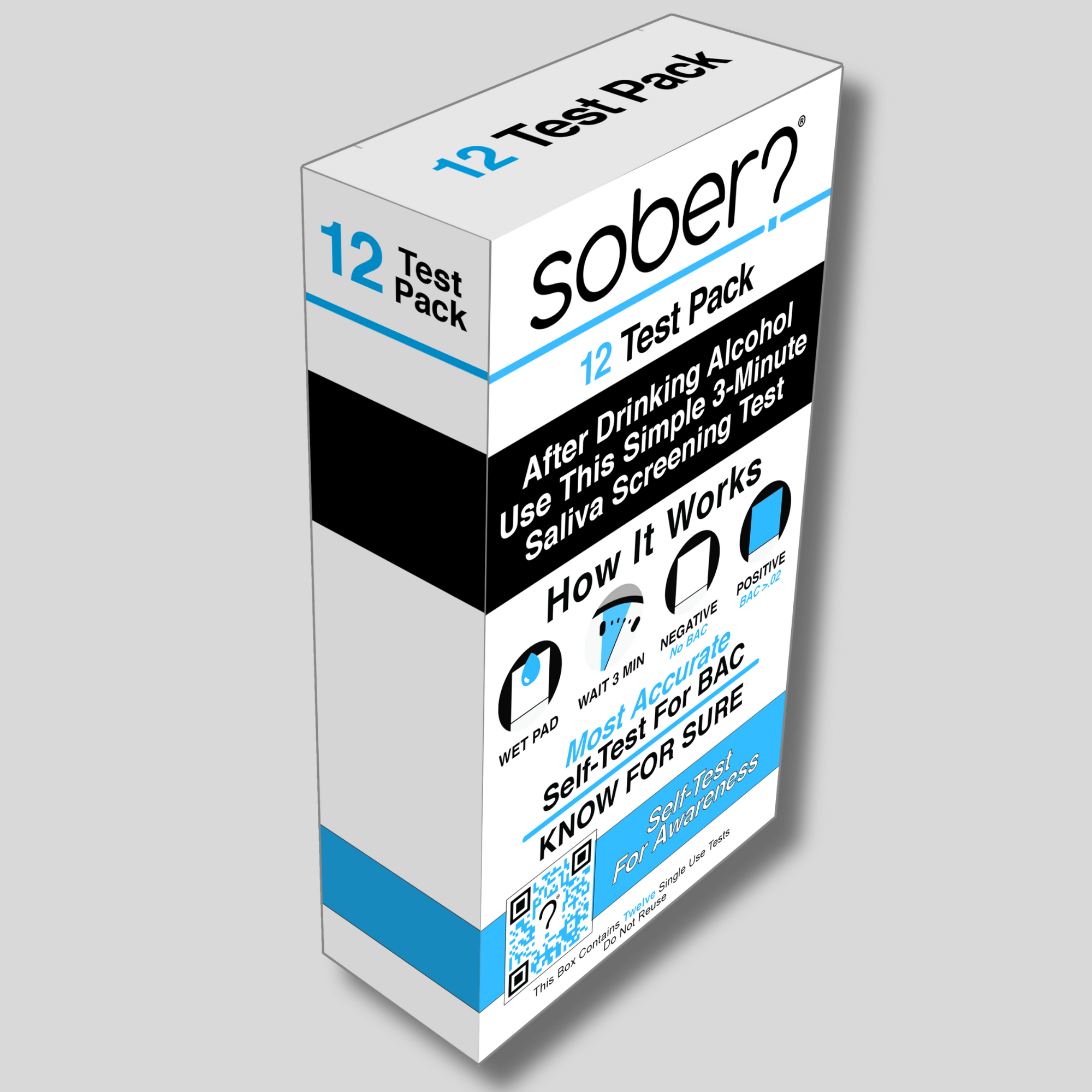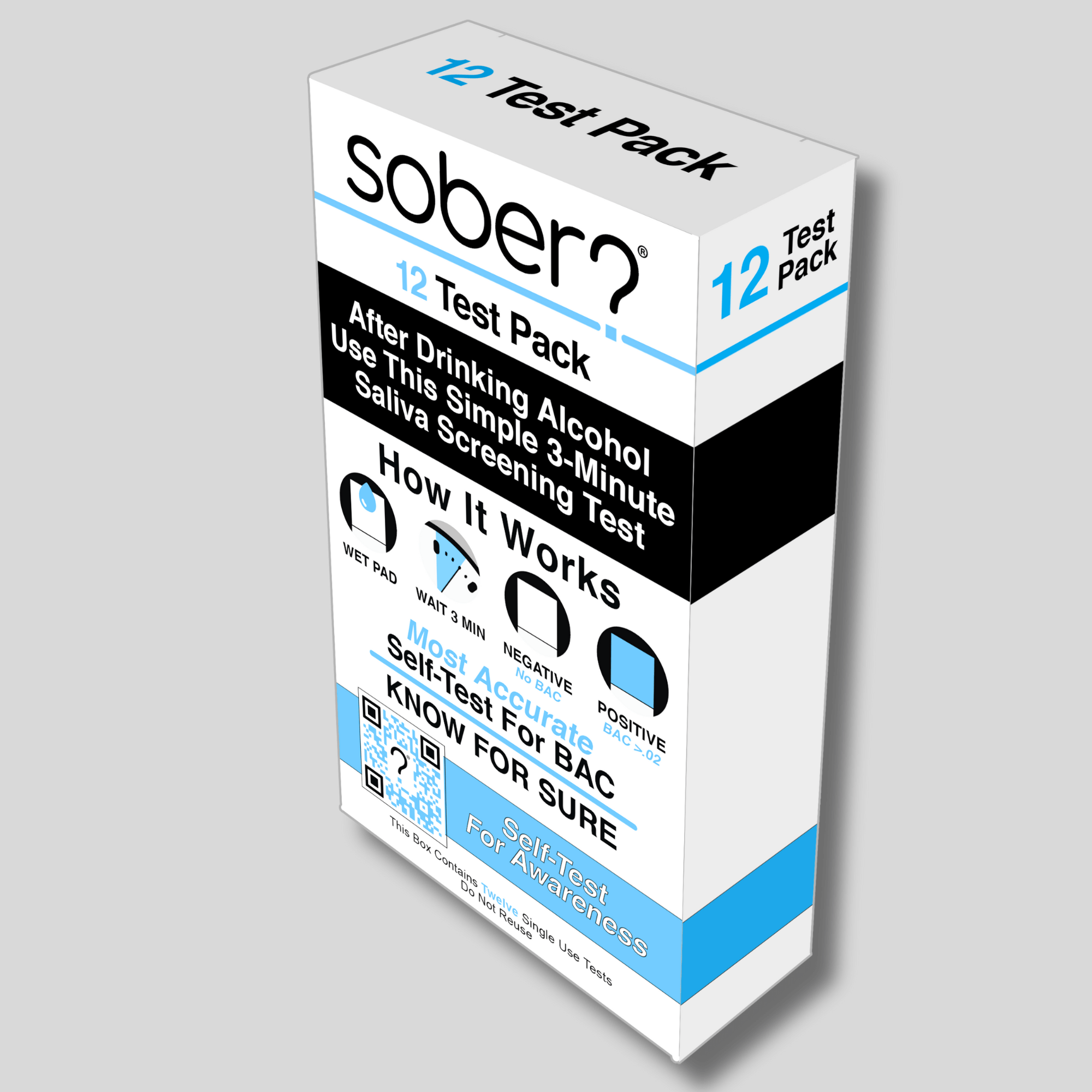 Planning to drive after a night out? Please donât risk it! Sober Self-Test is your ultimate solution for self-testing alcohol levels. Our easy-to-use saliva testing strips deliver fast, reliable, accurate results in just 2 minutes, so you can make the responsible decision to drive sober every time.
